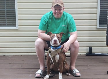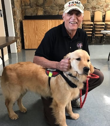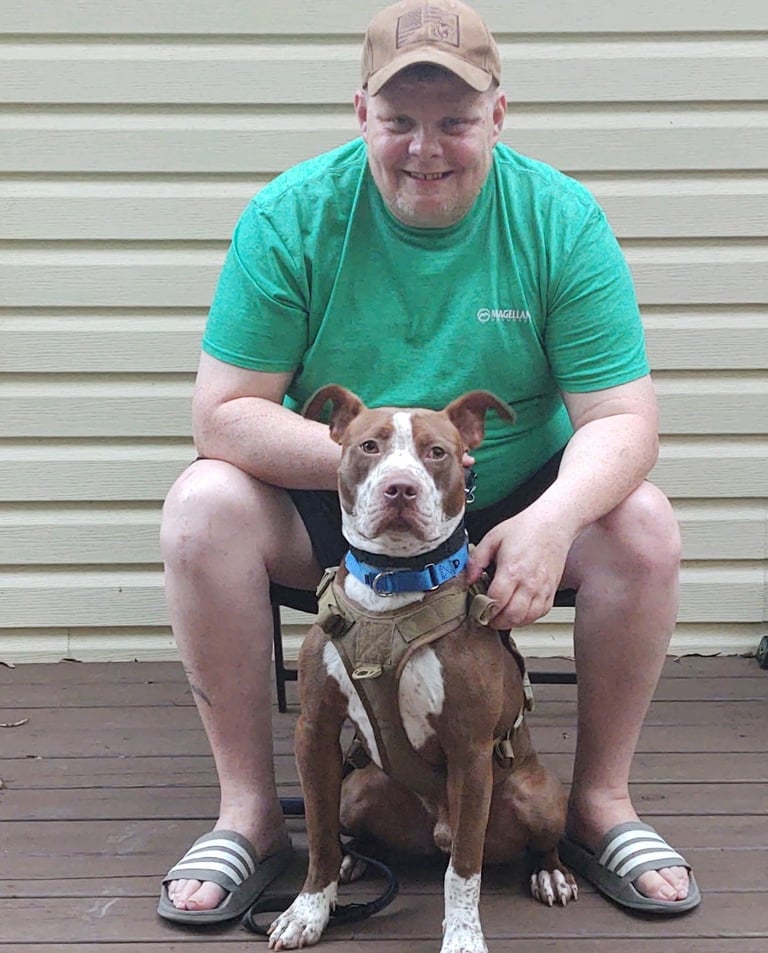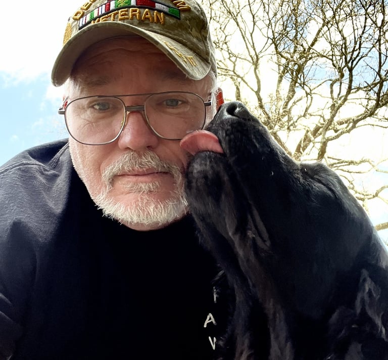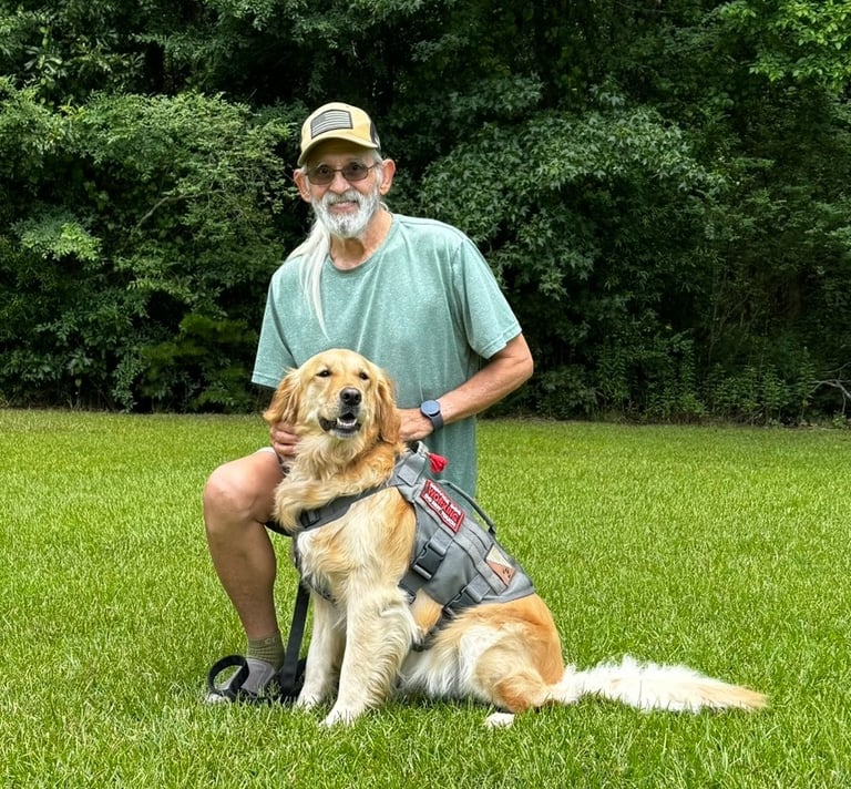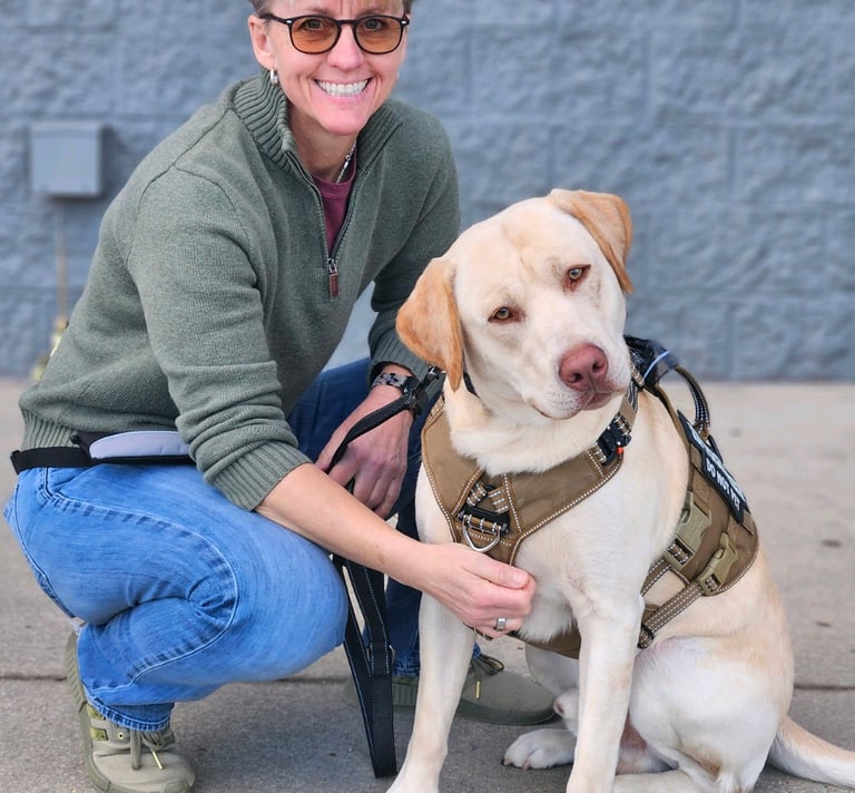 Tina has been around dogs her entire life and was a foster mom to several Labradors. She now trains with her service dog, Sarge—a goofy, strong, and sensitive partner who reminds her daily of the power of the veteran-dog bond.